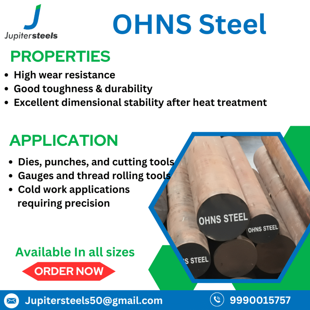 - OHNS chemical composition, OHNS steel applications, buy OHNS steel in Haryana, non-shrinking steel properties, OHNS hardness.