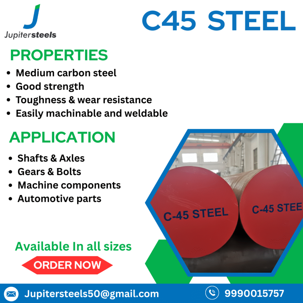 - Primary SEO: C45 steel, C45 steel supplier Delhi, medium carbon steel, Jupiter Steels.