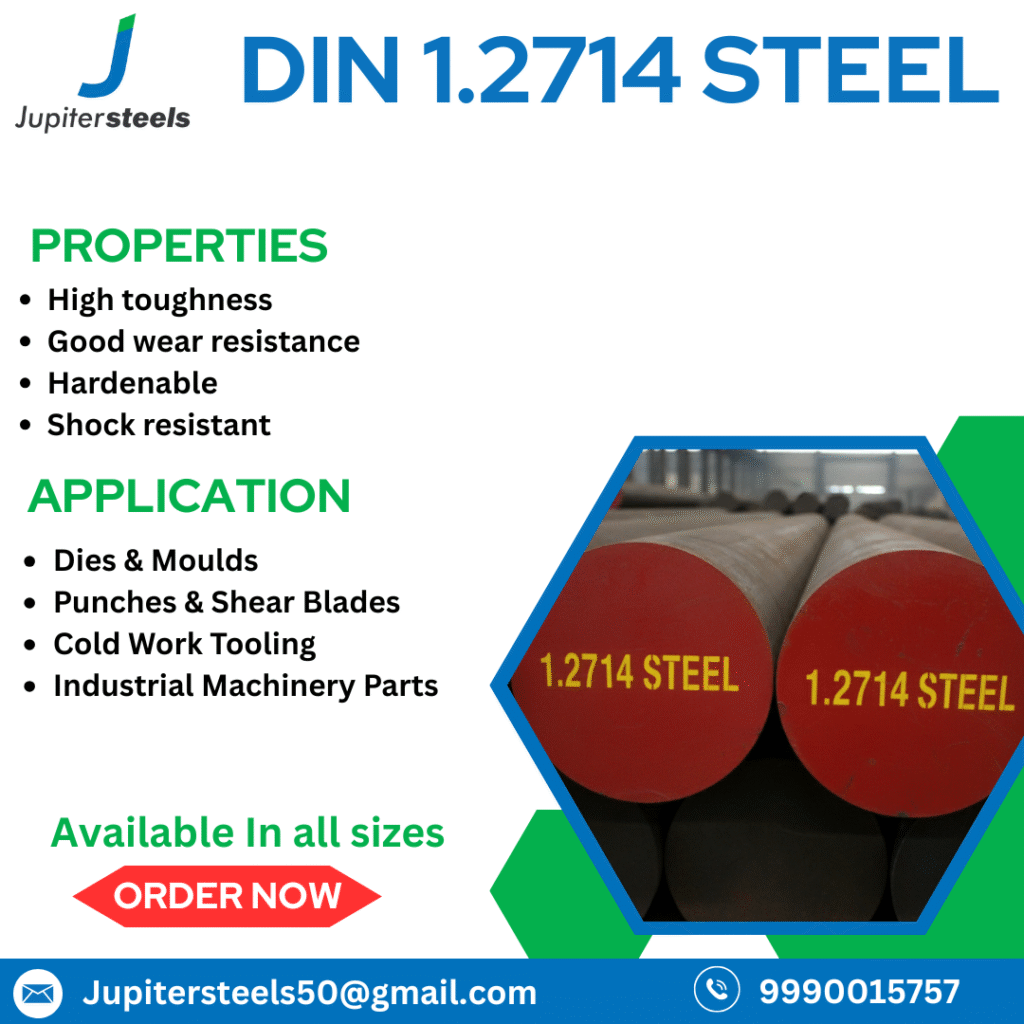 1.2714 steel is a versatile chromium-nickel-molybdenum tool steel known for its excellent combination of high toughness, impact strength, and good polishability. It is widely used for both hot work applications and medium-sized plastic moulds. Its pre-hardened condition makes it a convenient choice, saving time and cost by eliminating the need for complex heat treatment processes after machining. At Jupiter Steels, based in Delhi, we are a trusted stockist and supplier of 1.2714 steel, providing top-quality material to businesses throughout India, including industrial hubs in Manesar, Haryana, and beyond.