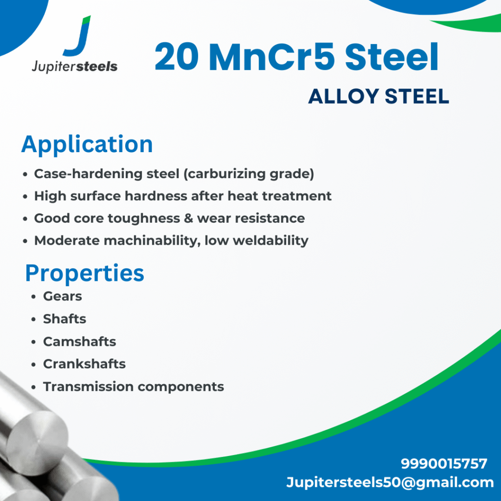 - 20MnCr5 steel, 20CrMo5 steel supplier Delhi, case hardening steel, Jupiter Steels.