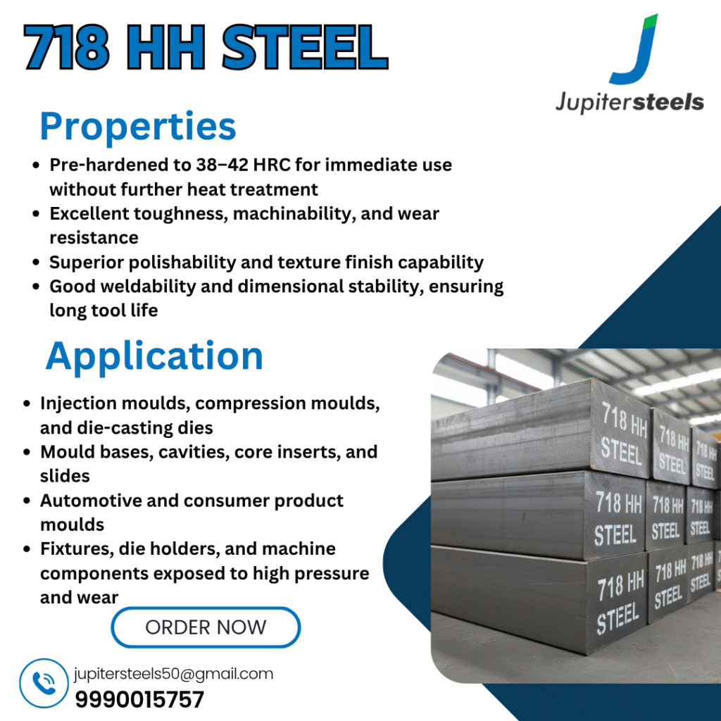 - 718 HH steel, 718 HH steel supplier Delhi, high hardness mould steel, Jupiter Steels.