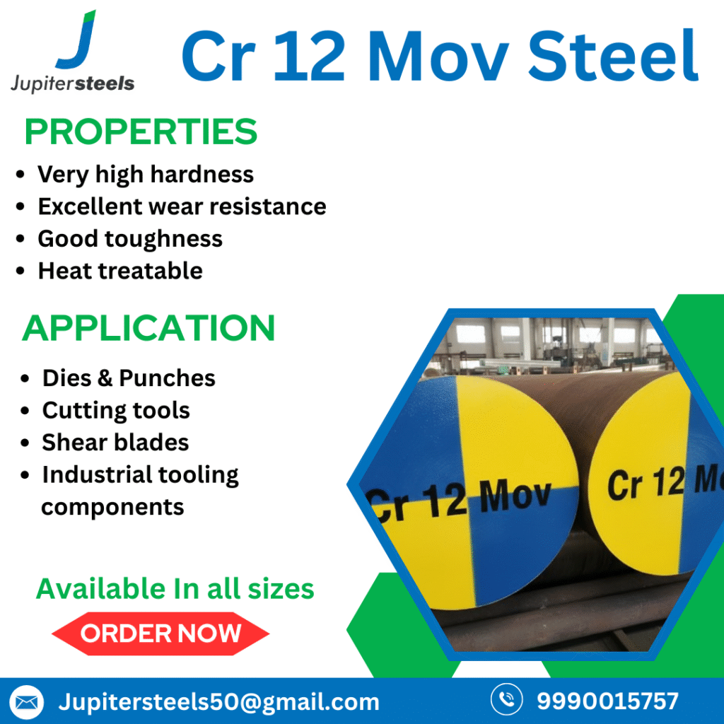 - Cr12MoV chemical composition, Cr12MoV steel applications, buy Cr12MoV steel in Haryana, high-carbon high-chromium steel, Cr12MoV hardness.