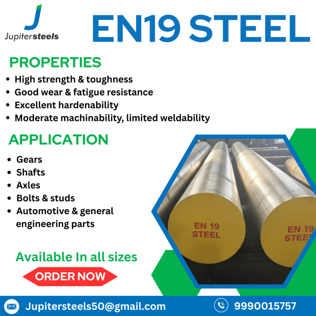 EN 19 steel is a popular chromium-molybdenum alloy steel known for its excellent combination of high tensile strength, toughness, and good ductility. This versatile grade is widely used in engineering applications that require a balance of high strength and resistance to wear and fatigue. It is typically supplied in a hardened and tempered condition, making it a reliable choice for a variety of components. At Jupiter Steels, based in Delhi, we are a trusted stockist and supplier of EN 19 steel, providing certified material to customers throughout India, including key industrial regions like Manesar, Haryana, and beyond.