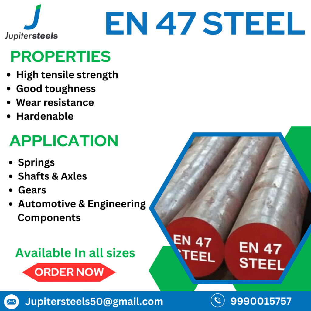 - Primary SEO: EN 47 steel, EN 47 steel supplier Delhi, spring steel, Jupiter Steels.
